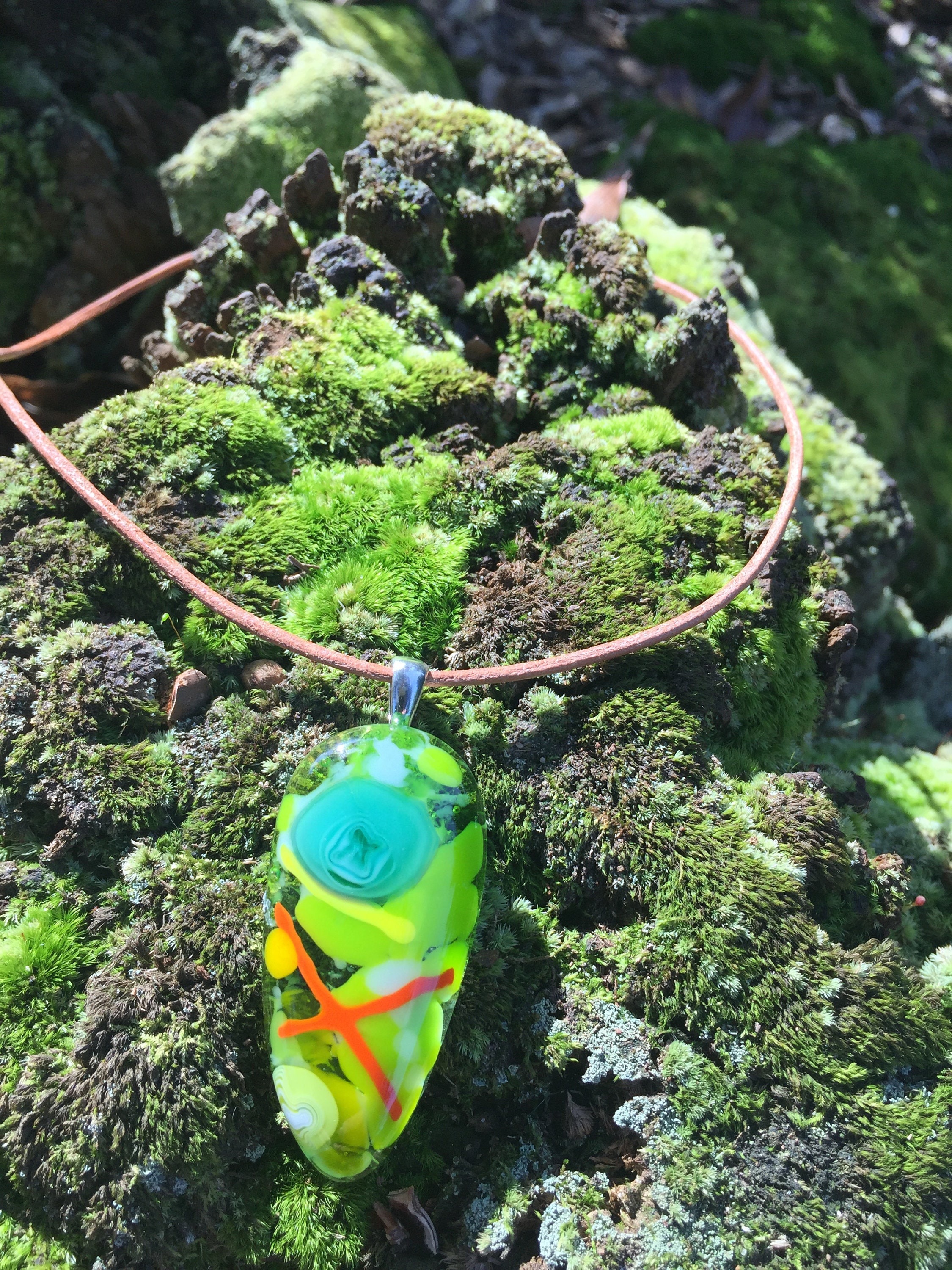 Bright Green And Turquoise Glass Pendant On 18 Leather Necklace Need Gift Ideas For Your Sister In Law Coworker Gift For Her Birthday